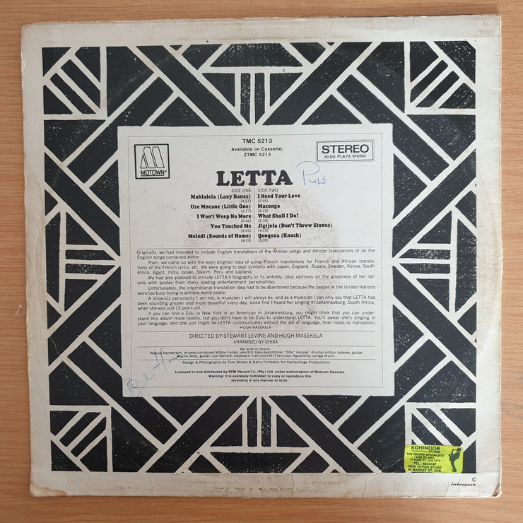 Letta Mbulu – Letta – Vinyl LP Record (VG)