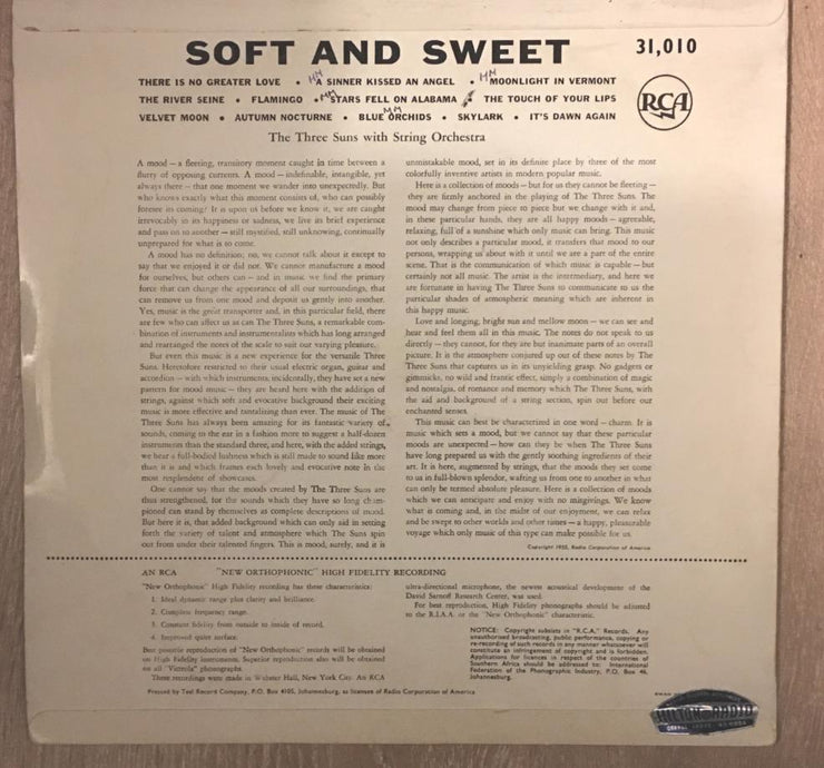 The Three Suns – Soft And Sweet - Vinyl LP Record - Opened - Very-Good Quality (VG)