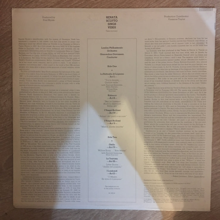 Renata Scotto ‎– Verdi –  Vinyl LP Record - Opened  - Very-Good Quality (VG) - C-Plan Audio