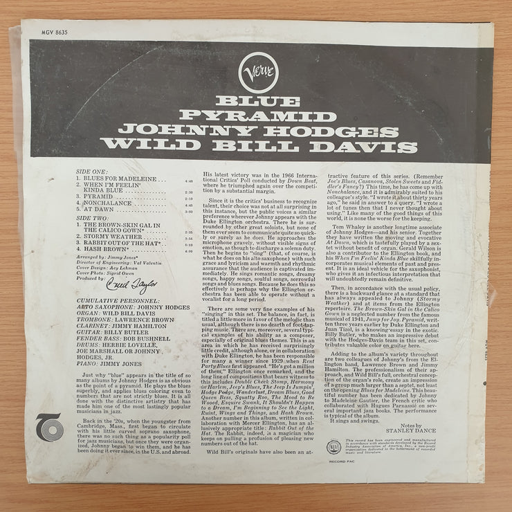 Johnny Hodges, Wild Bill Davis – Blue Pyramid (8635) - Vinyl LP Record - Very-Good+ Quality (VG+)