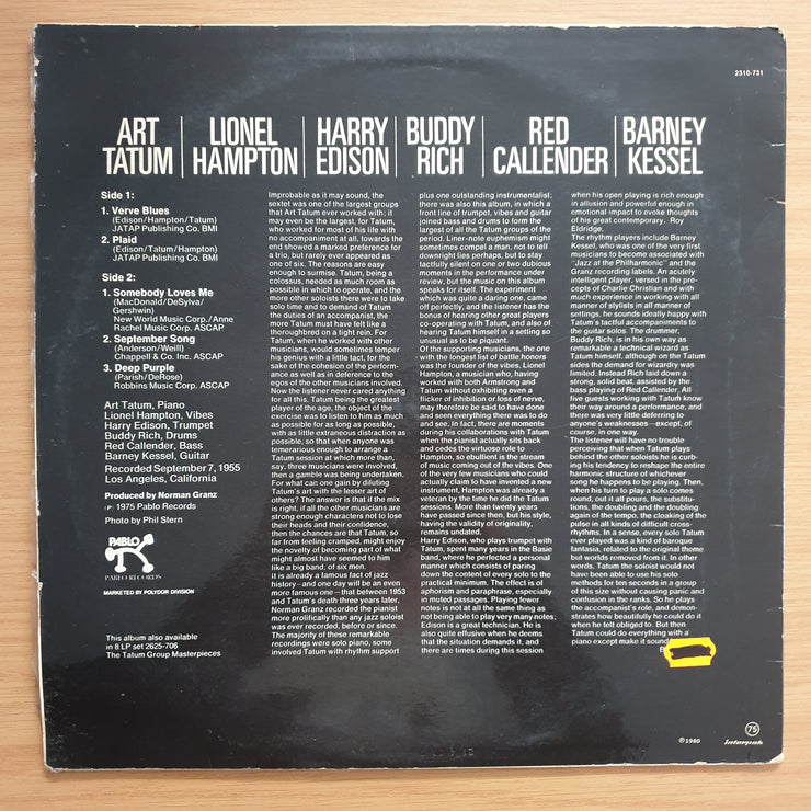 The Tatum Group Masterpieces – Art Tatum - Hampton / Edison / Rich /Callender / Kessel – Vinyl LP Record (VG) (SCD)
