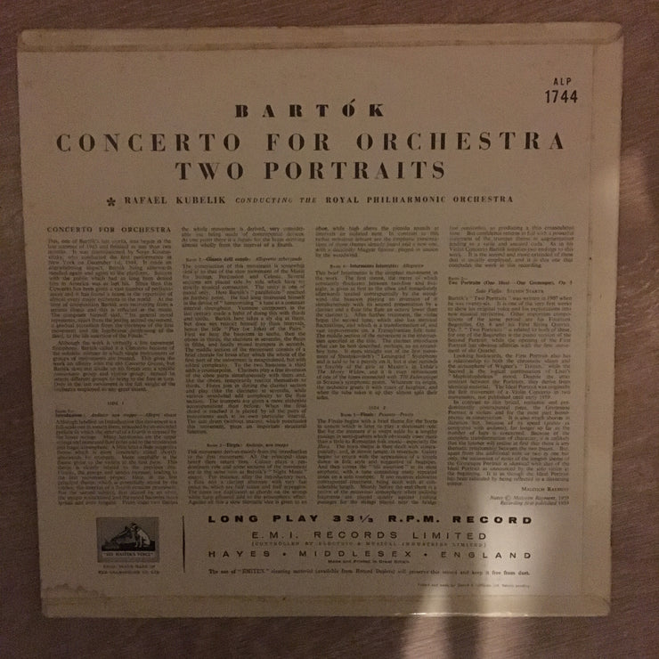 Bartók, The Royal Philharmonic Orchestra Conducted By Rafael Kubelik – Concerto For Orchestra - Two Portraits, Op. 5 - Vinyl LP Record - Opened - Very-Good+ Quality (VG+)