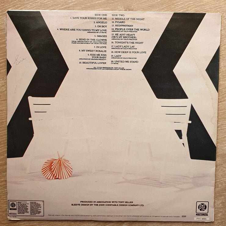 Tracklist Save Your Kisses For Me Angelo Oh Boy Where Are You Going To My Love Images Send In The Clowns In Love My Sweet Rosalie Kiss Me Kiss Your Baby Beautiful Lover Middle Of The Night Figaro Highwayman People Over The World He Ain't Heavy (He's My Brother) Tonight's The Night Lady Lady Lay How Deep Is Your Love Lady United We Stand