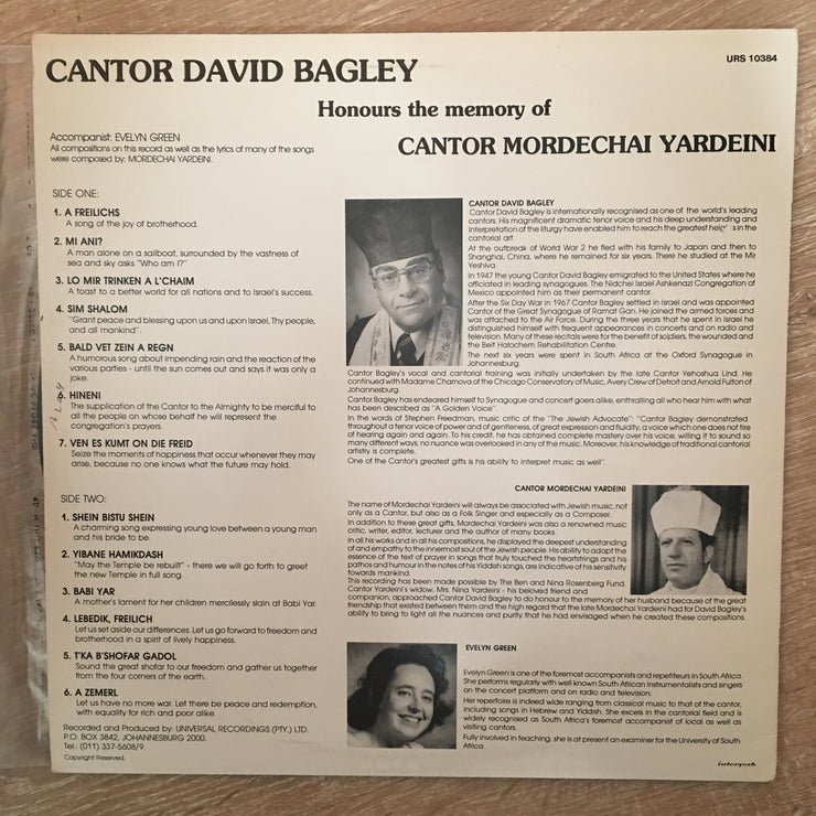 Cantor David Bagley – Honours The Memory Of Cantor Mordechai Yardeini - Vinyl LP Record - Opened - Very-Good+ Quality (VG+)