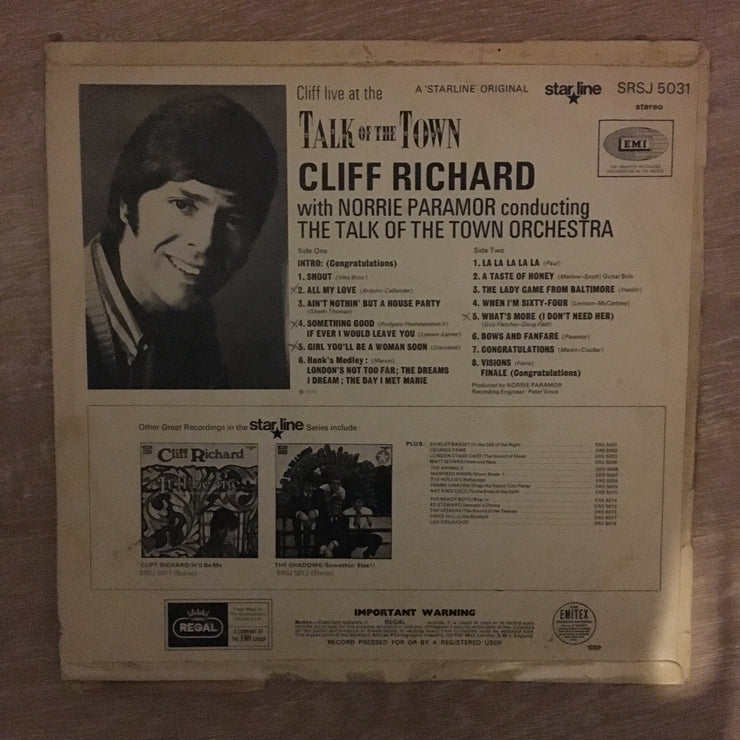 Cliff Richard - Live At The Talk Of The Town - Vinyl LP Record - Opened - Very-Good- Quality (VG-)