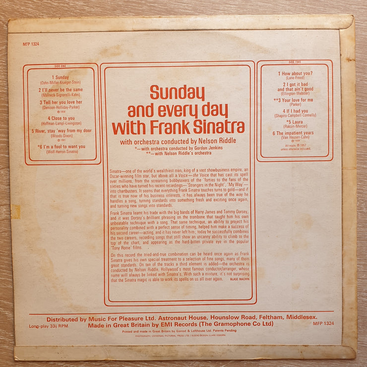 Frank Sinatra - Sunday and Everyday - Vinyl LP Record - Very-Good+ Quality (VG+)