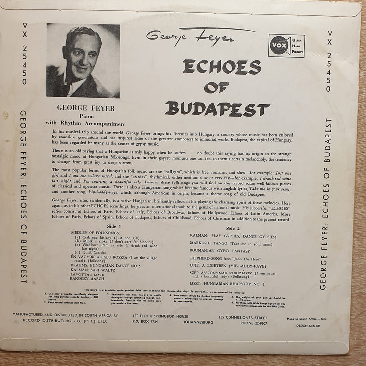 George Feyer – Echoes Of Budapest - Vinyl Record - Very-Good+ Quality (VG+)