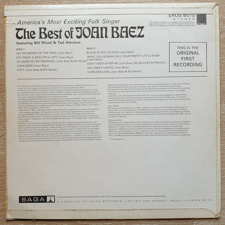 Joan Baez, Bill Wood, Ted Alevizos – The Best Of Joan Baez - Vinyl LP Record - Opened - Very-Good Quality (VG)