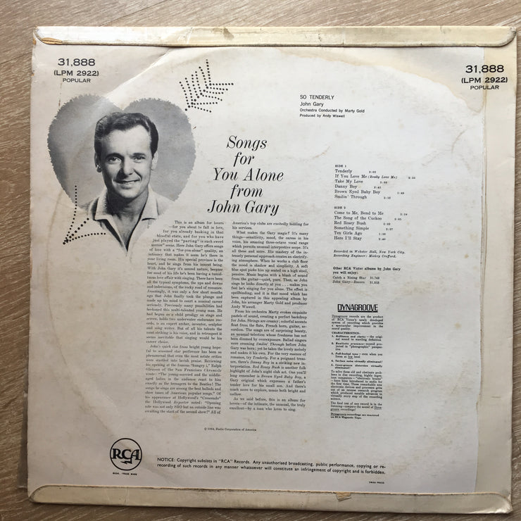 John Gary - So Tenderly - Vinyl LP Record - Opened - Very-Good+ Quality (VG+)