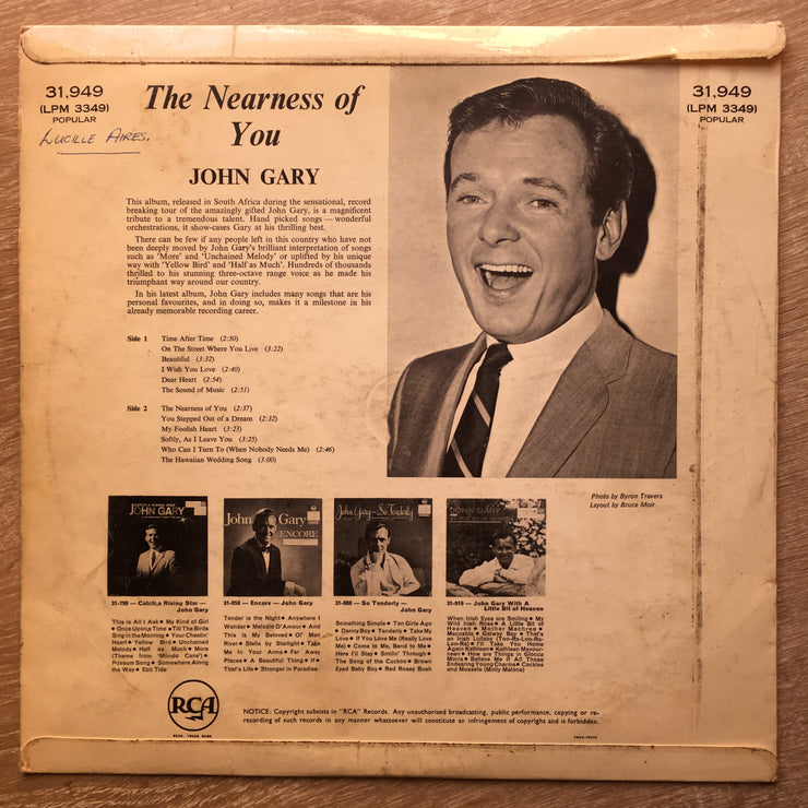 John Gary - The Nearness Of You - Vinyl LP Record - Opened - Very-Good- Quality (VG-)