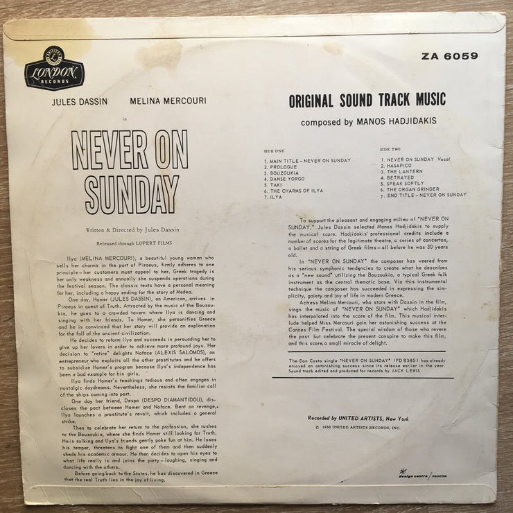 Jules Dassin's - Never On Sunday - Vinyl LP Record - Opened - Good Quality (G)
