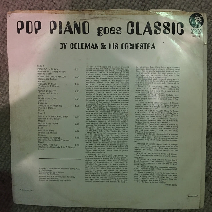 Cy Coleman & His Orchestra - Pop Piano Goes Classics - Vinyl LP Record - Opened  - Good+ Quality (G+) - C-Plan Audio