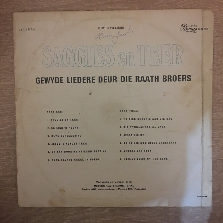 Raath Broers - Saggies en Teer - Vinyl LP Record - Opened - Good Quality (G)