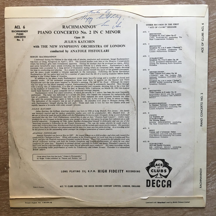 Rachmaninov - Julius Katchen, New Symphony Orchestra Of London, Anatole Fistoulari – Second Piano Concerto – Vinyl LP Record - Opened - Very-Good+ Quality (VG+)