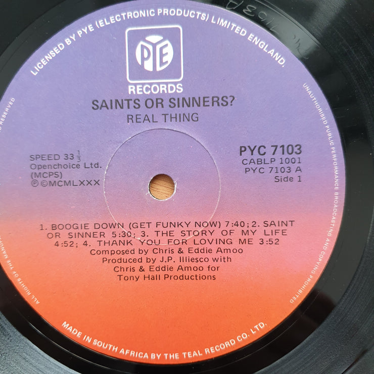 Real Thing – Saints Or Sinners - Vinyl LP Record - Very-Good- Quality (VG-) (minus)