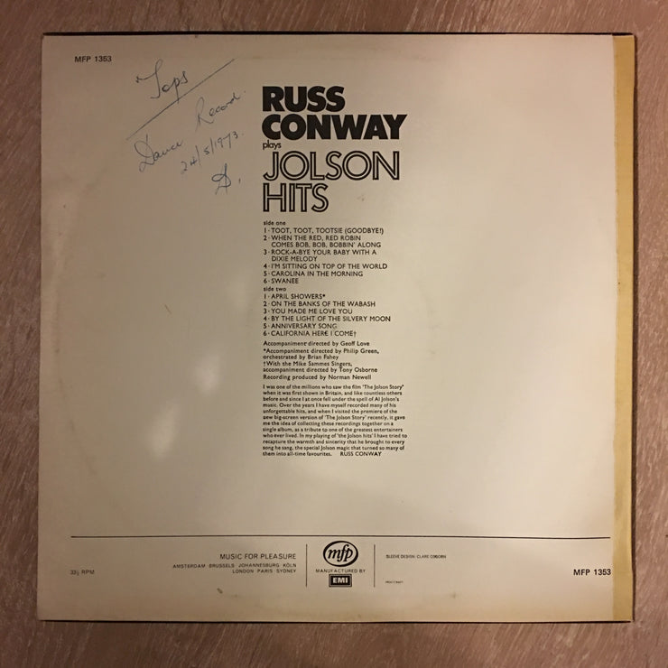 Russ Conway Plays Jolson Hits - Vinyl LP Record - Opened - Very-Good+ Quality (VG+)