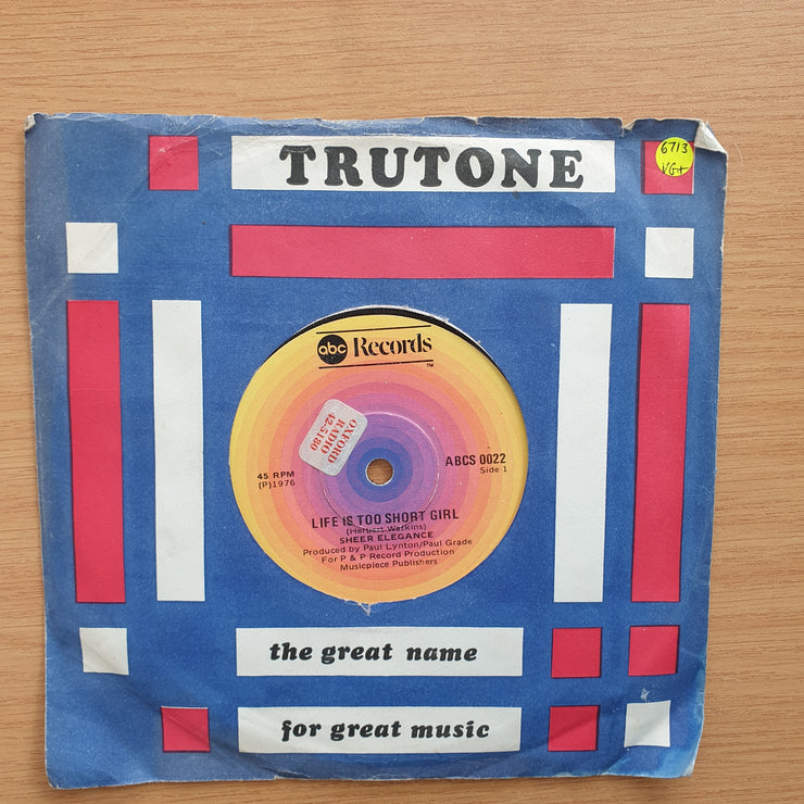 Sheer Elegance – Life Is Too Short Girl - Vinyl 7" Record - Very-Good+ Quality (VG+) (verygoodplus7)