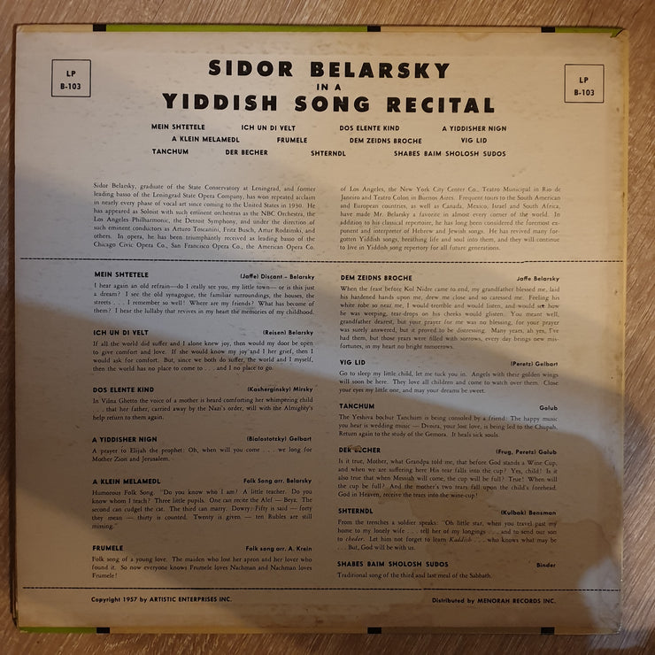 Sidor Belarsky – In A Yiddish Song Recital - Vinyl Record - Very-Good+ Quality (VG+)