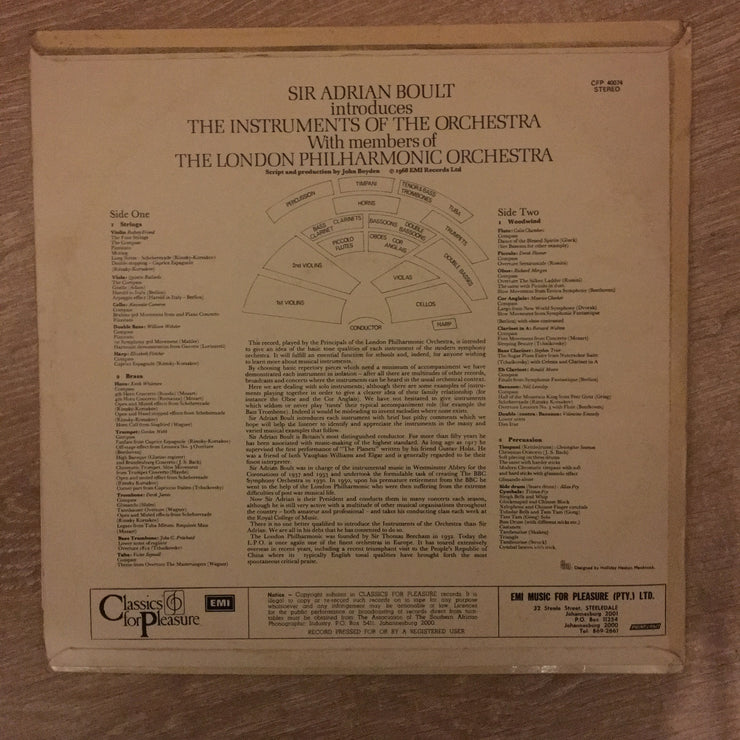 Sir Adrian Boult - Introduces The Instruments Of The Orchestra - Vinyl LP Record - Opened - Very-Good+ Quality (VG+)
