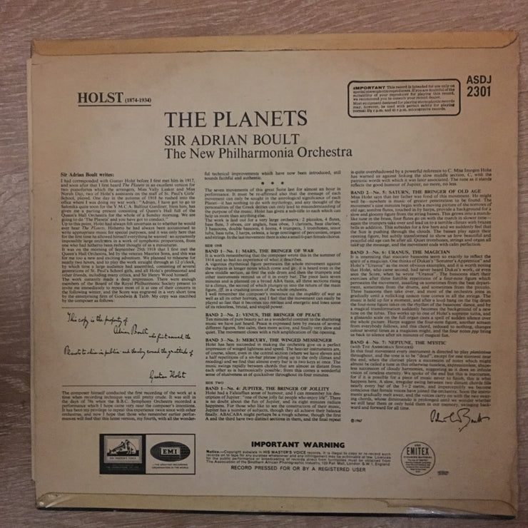 Sir Adrian Boult - The Planets - Vinyl LP Record - Opened - Very-Good+ Quality (VG+)