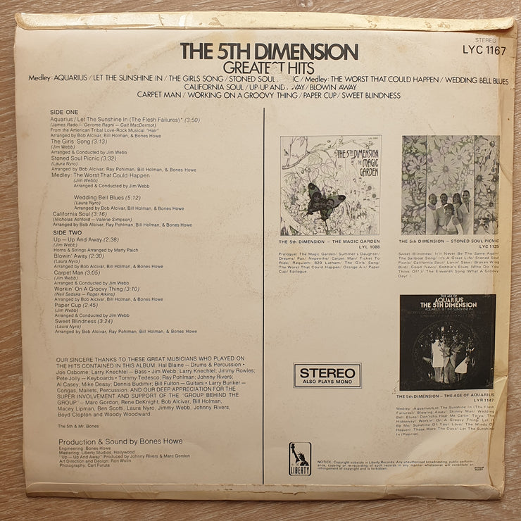 The 5th Dimension – Greatest Hits - Vinyl Record - Very-Good+ Quality (VG+)