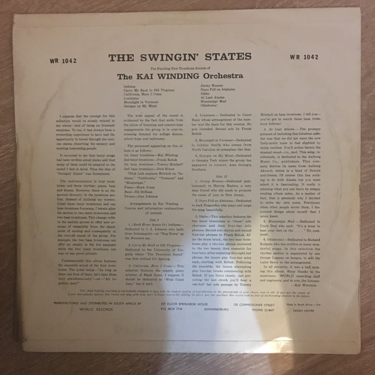 The Kai Winding Orchestra – The Swingin' States - Vinyl LP Record - Opened - Good+ Quality (G+)