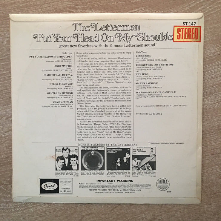 The Lettermen - Put Your Head on My Shoulder - Vinyl LP Record - Opened - Very-Good+ Quality (VG+)