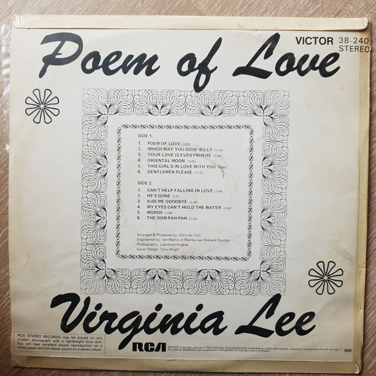 Virginia Lee- Poem Of Love - Vinyl LP Record - Opened - Very-Good Quality (VG)